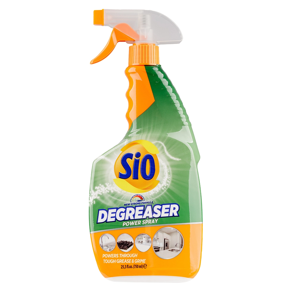 Sio Degreaser Spray curăță cu ușurință uleiurile și petele greu de îndepărtat de pe toate suprafețele dure.